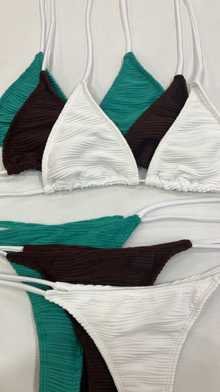 Bikini triangulito texturado combinado y colaless con tiras para atar